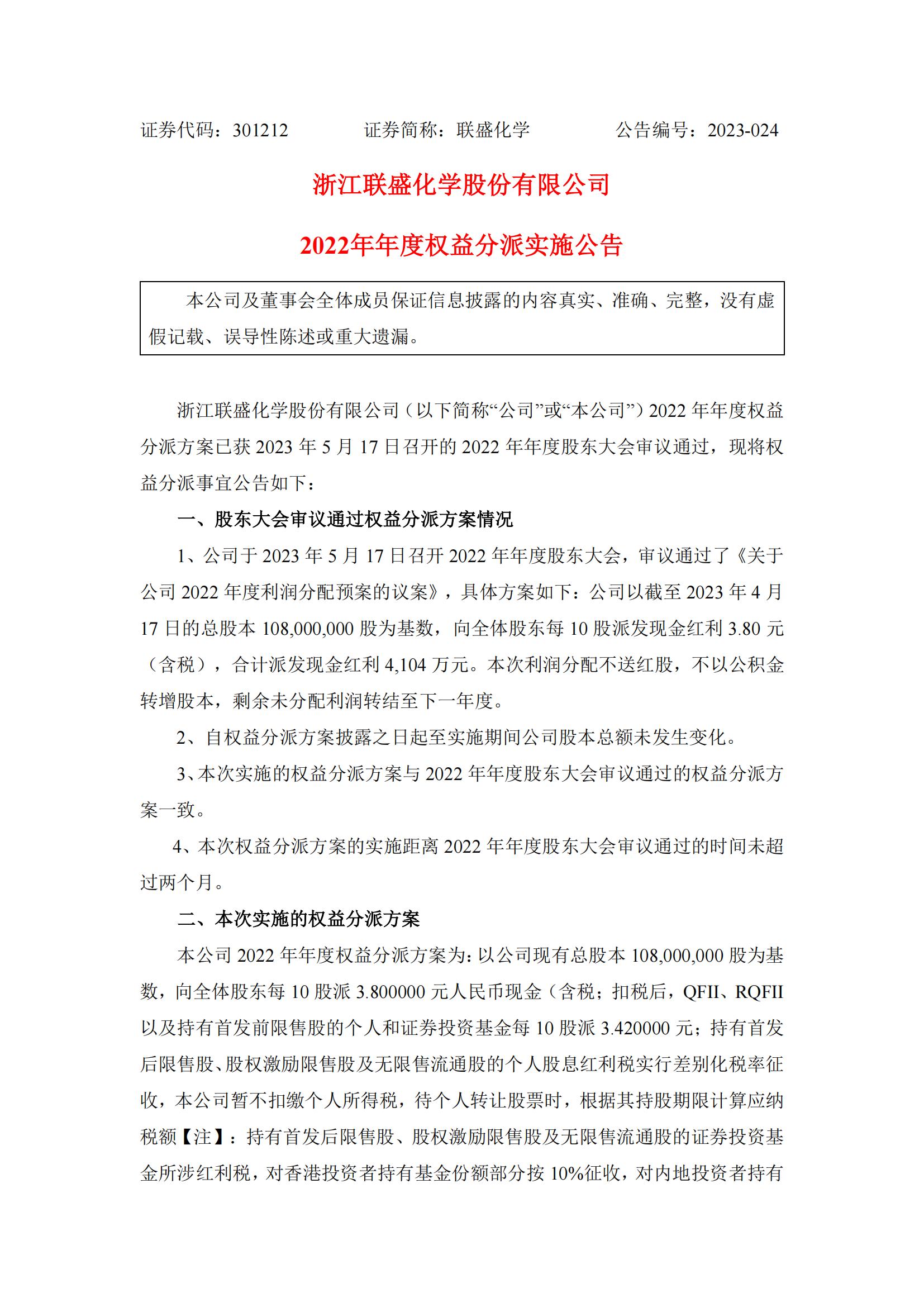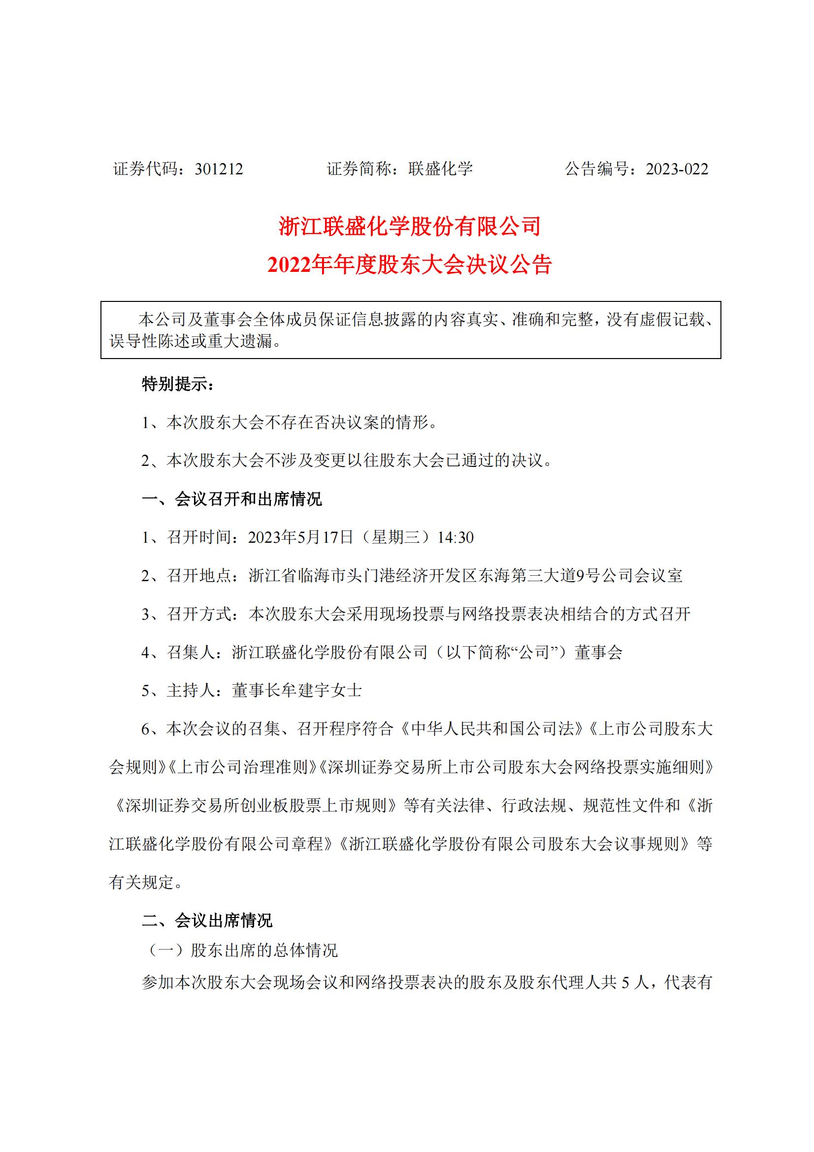 Announcement on the Resolution of the 2022 Annual General Meeting of Shareholders of Zhejiang Liansheng Chemical Co., Ltd http://www.f590.cn/index.php/en/2023/05/17/%e6%b5%99%e6%b1%9f%e8%81%94%e7%9b%9b%e5%8c%96%e5%ad%a6%e8%82%a1%e4%bb%bd%e6%9c%89%e9%99%90%e5%85%ac%e5%8f%b82022%e5%b9%b4%e5%b9%b4%e5%ba%a6%e8%82%a1%e4%b8%9c%e5%a4%a7%e4%bc%9a%e5%86%b3%e8%ae%ae/ http://www.f590.cn/index.php/en/2023/05/17/%e6%b5%99%e6%b1%9f%e8%81%94%e7%9b%9b%e5%8c%96%e5%ad%a6%e8%82%a1%e4%bb%bd%e6%9c%89%e9%99%90%e5%85%ac%e5%8f%b82022%e5%b9%b4%e5%b9%b4%e5%ba%a6%e8%82%a1%e4%b8%9c%e5%a4%a7%e4%bc%9a%e5%86%b3%e8%ae%ae/#respond Wed, 17 May 2023 02:58:27 +0000 http://www.f590.cn/?p=894