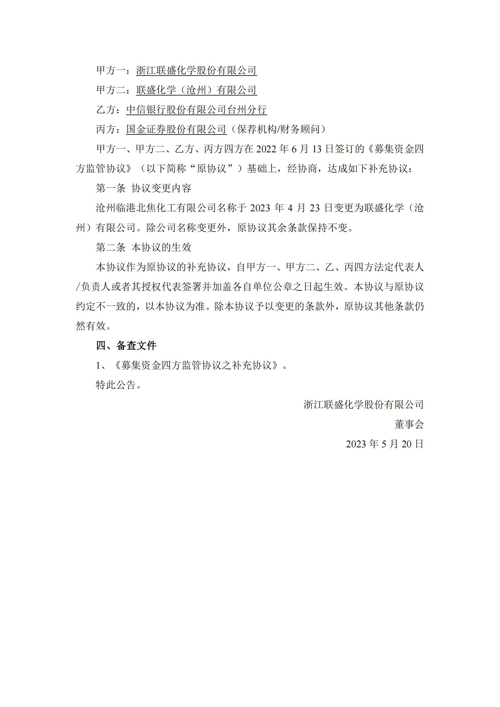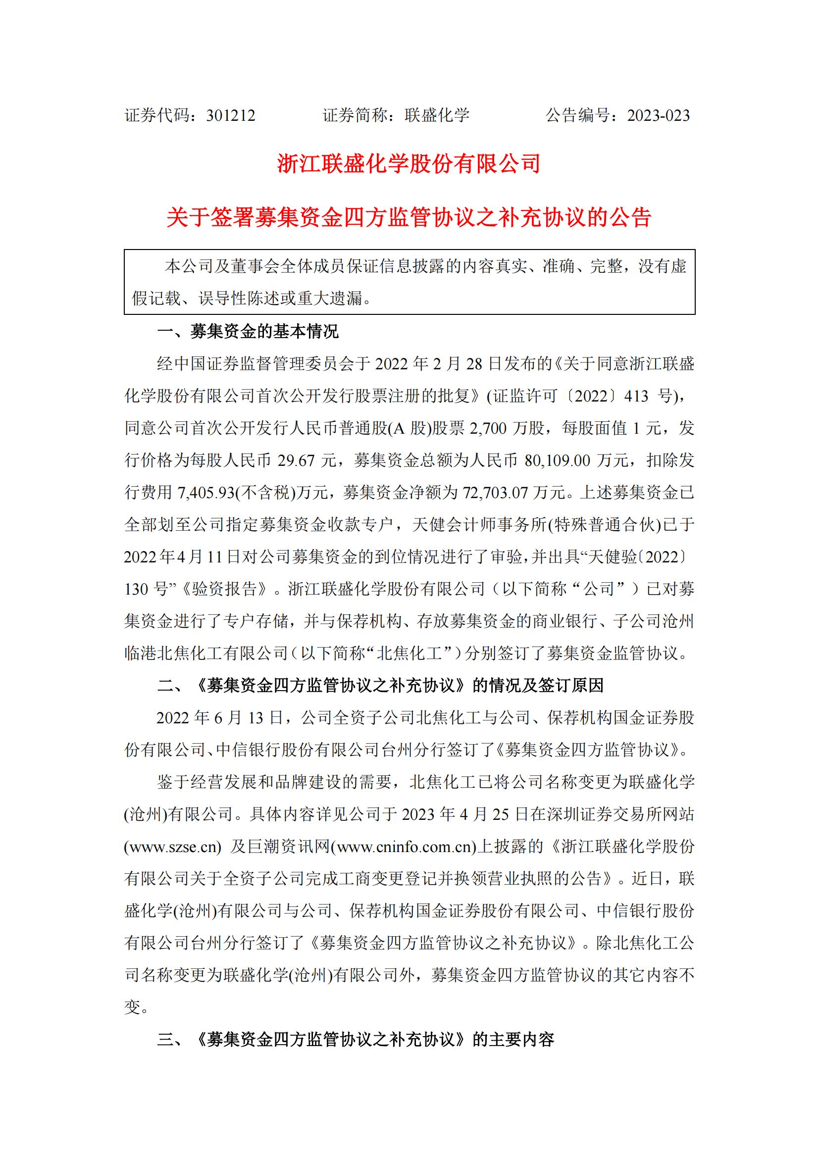 Announcement of Zhejiang Liansheng Chemical Co., Ltd. on Signing the Supplementary Agreement to the Four Party Supervision Agreement for Raising Funds http://www.f590.cn/index.php/en/2023/05/20/%e6%b5%99%e6%b1%9f%e8%81%94%e7%9b%9b%e5%8c%96%e5%ad%a6%e8%82%a1%e4%bb%bd%e6%9c%89%e9%99%90%e5%85%ac%e5%8f%b8%e5%85%b3%e4%ba%8e%e7%ad%be%e7%bd%b2%e5%8b%9f%e9%9b%86%e8%b5%84%e9%87%91%e5%9b%9b%e6%96%b9/ http://www.f590.cn/index.php/en/2023/05/20/%e6%b5%99%e6%b1%9f%e8%81%94%e7%9b%9b%e5%8c%96%e5%ad%a6%e8%82%a1%e4%bb%bd%e6%9c%89%e9%99%90%e5%85%ac%e5%8f%b8%e5%85%b3%e4%ba%8e%e7%ad%be%e7%bd%b2%e5%8b%9f%e9%9b%86%e8%b5%84%e9%87%91%e5%9b%9b%e6%96%b9/#respond Sat, 20 May 2023 03:11:23 +0000 http://www.f590.cn/?p=892
