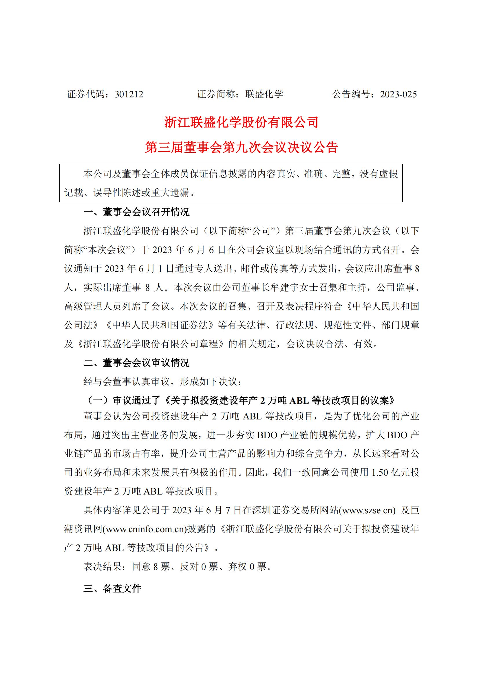 Announcement on the Resolution of the 9th Meeting of the 3rd Board of Directors of Zhejiang Liansheng Chemical Co., Ltd http://www.f590.cn/index.php/en/2023/06/07/%e6%b5%99%e6%b1%9f%e8%81%94%e7%9b%9b%e5%8c%96%e5%ad%a6%e8%82%a1%e4%bb%bd%e6%9c%89%e9%99%90%e5%85%ac%e5%8f%b8%e7%ac%ac%e4%b8%89%e5%b1%8a%e8%91%a3%e4%ba%8b%e4%bc%9a%e7%ac%ac%e4%b9%9d%e6%ac%a1%e4%bc%9a/ Wed, 07 Jun 2023 03:21:24 +0000 http://www.f590.cn/?p=886