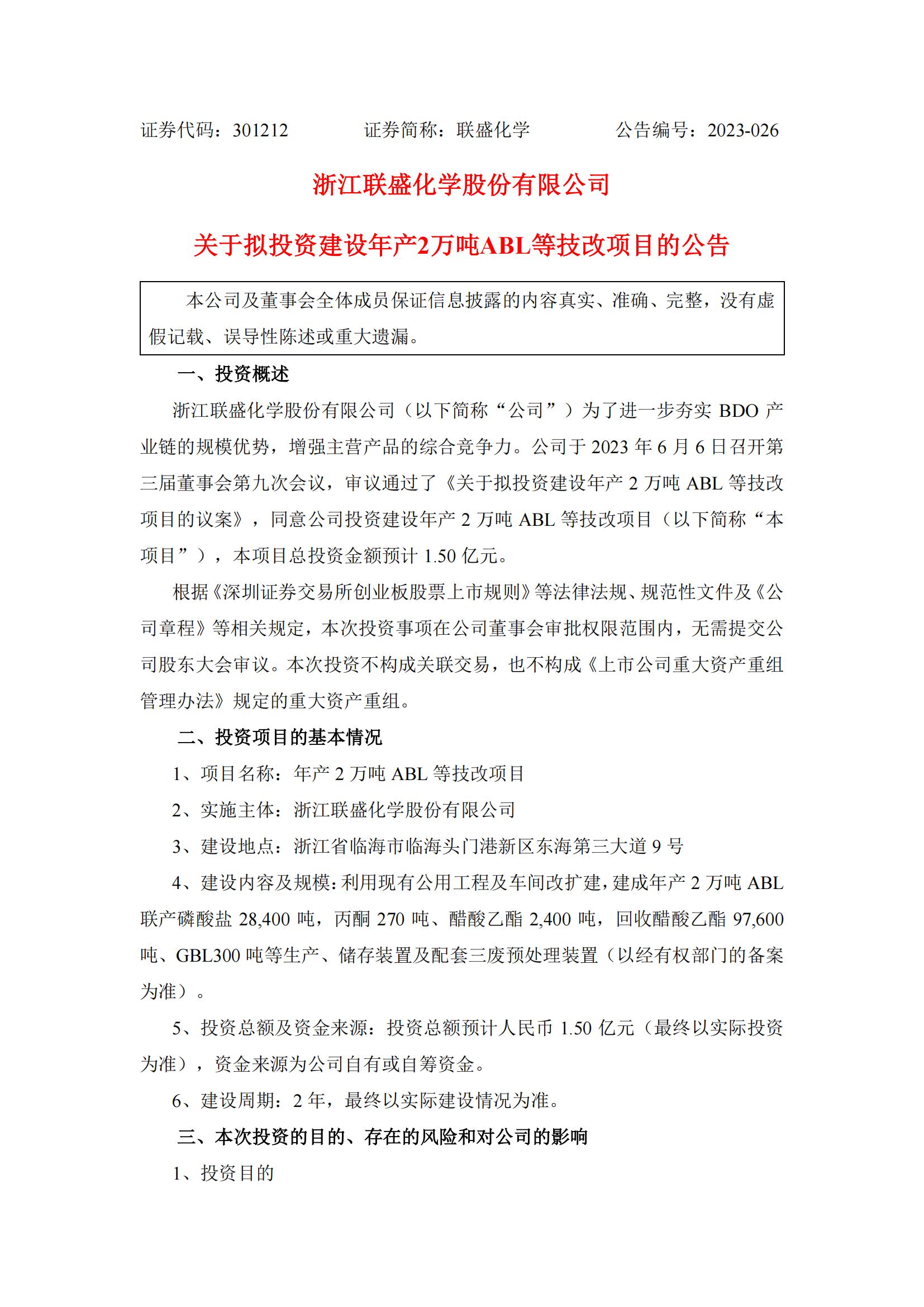 Announcement of Zhejiang Liansheng Chemical Co., Ltd. on the Proposed Investment and Construction of Technical Renovation Projects with an Annual Output of 20000 tons of ABL http://www.f590.cn/index.php/en/2023/06/07/%e6%b5%99%e6%b1%9f%e8%81%94%e7%9b%9b%e5%8c%96%e5%ad%a6%e8%82%a1%e4%bb%bd%e6%9c%89%e9%99%90%e5%85%ac%e5%8f%b8%e5%85%b3%e4%ba%8e%e6%8b%9f%e6%8a%95%e8%b5%84%e5%bb%ba%e8%ae%be%e5%b9%b4%e4%ba%a72%e4%b8%87/ http://www.f590.cn/index.php/en/2023/06/07/%e6%b5%99%e6%b1%9f%e8%81%94%e7%9b%9b%e5%8c%96%e5%ad%a6%e8%82%a1%e4%bb%bd%e6%9c%89%e9%99%90%e5%85%ac%e5%8f%b8%e5%85%b3%e4%ba%8e%e6%8b%9f%e6%8a%95%e8%b5%84%e5%bb%ba%e8%ae%be%e5%b9%b4%e4%ba%a72%e4%b8%87/#respond Wed, 07 Jun 2023 03:18:34 +0000 http://www.f590.cn/?p=888